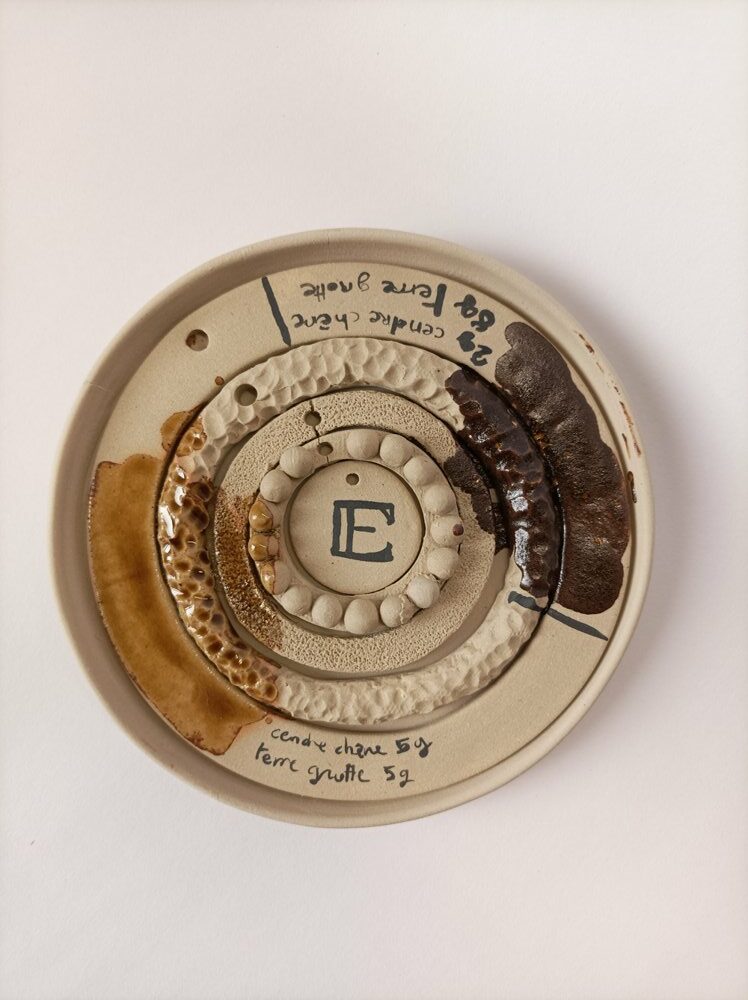 Deux jours de workshop sur l’émail. Explication des grands principes et de ma démarche. Réalisation de multiples essais sur des tessons préparés par les élèves au préalable. Terres et minéraux récolté.es, émaux de l’école, mélange de matières et recettes.